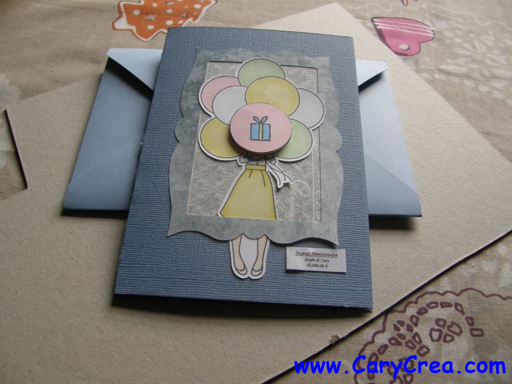 J'y ai pensé trop tard, mais j'aurais pu tamponner le ballon sur une autre feuille et le coller. Voir même, mettre un coeur plié en deux à la place. Pour mettre un peu de 3D.